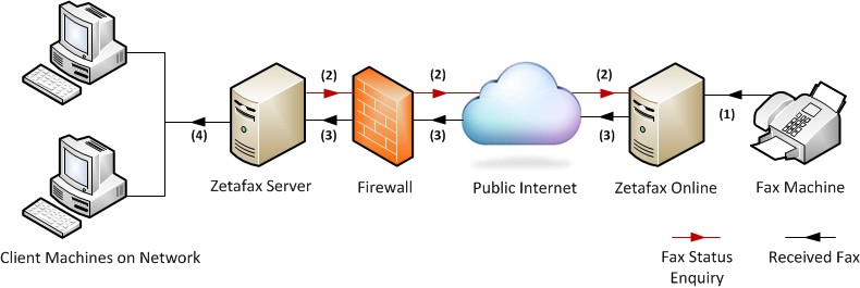 (2)The Zetafax Server checks regularly for received faxes – typically every minute. There is usually no need to change the settings for the corporate firewall to allow inbound faxes to be received.